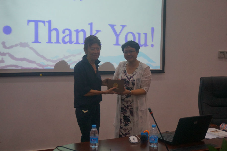 At the end of the lecture, Professor Salmon presented to the School a book on the study of Chinese tombs in Southeast Asia. Deputy Dean Shi Xueqin, expressed gratitude and presented the souvenirs on behalf of the School.