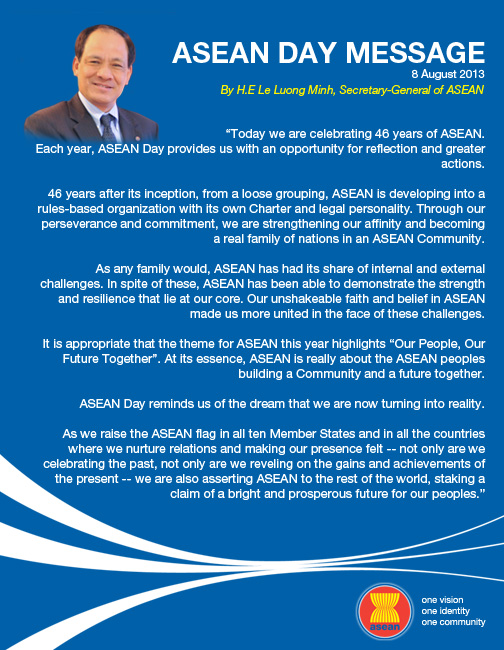 ASEAN Secretariat News ASEAN DAY MESSAGE 2013 FROM HIS MAJESTY THE SULTAN AND YANG DI-PERTUAN OF BRUNEI DARUSSALAM